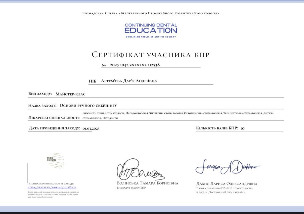 - Парадонтологічний прийом (Парокарта, закритий та відкритий кюретаж, лікування та супровід парадонтита);